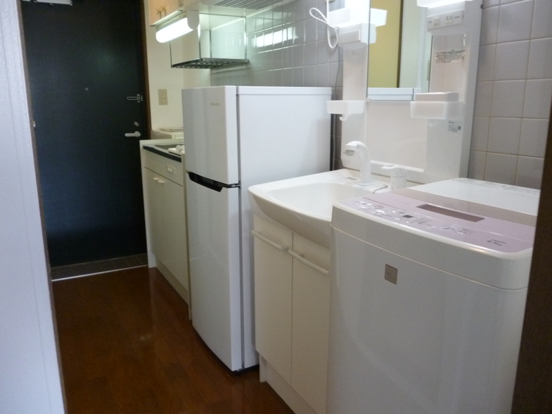 冷蔵庫、洗濯機、ベッド、1口ガスコンロ、シャンプードレッサー