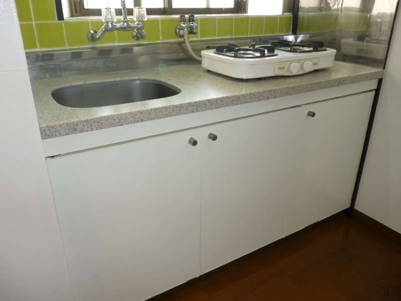 2口ガスコンロ、本棚、ベッド2つ
